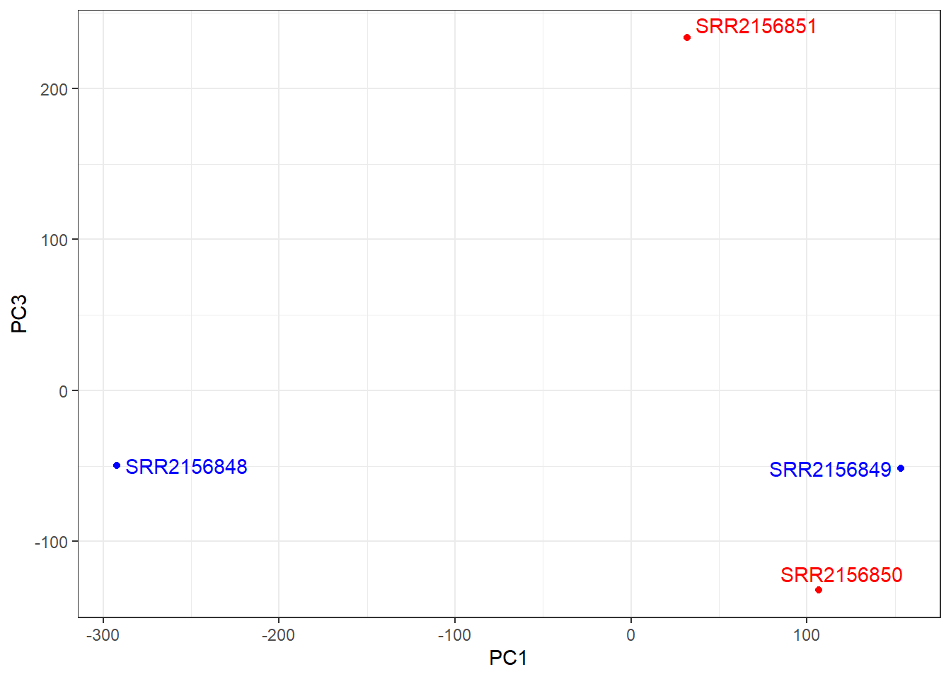 aes(PC1, PC3, label=rownames(pca$x)) +