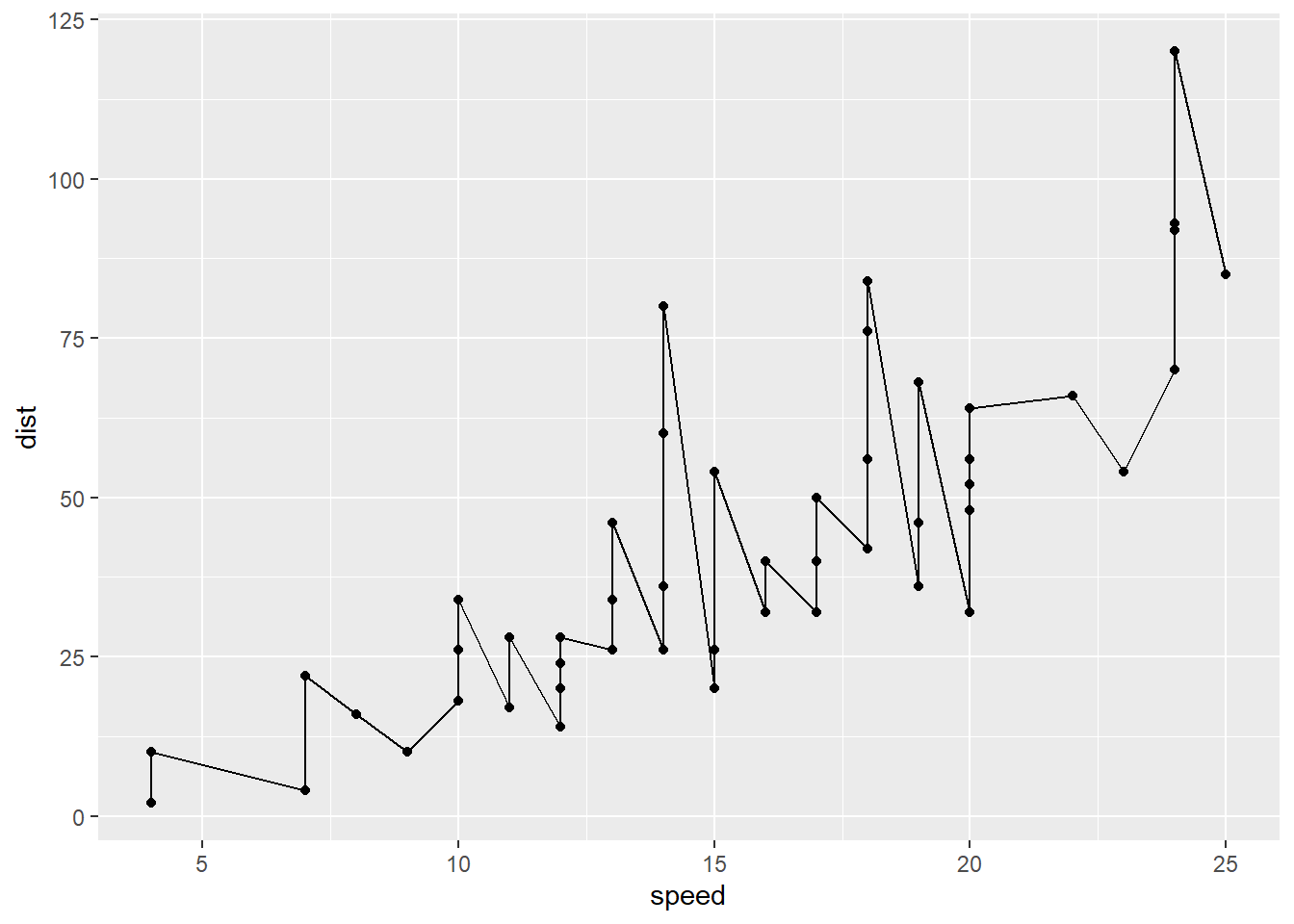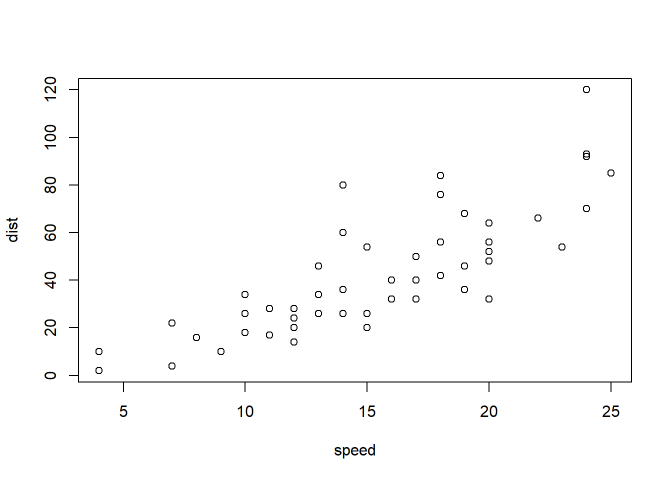 Let’s make the same plot with these two graphics systems. We can use the inbuilt cars dataset: